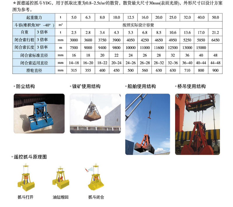 遙(yáo)控抓鬥(dòu)是一種(zhǒng)配合單(dan)索起重(zhong)機通過(guò)無線遙(yáo)控⛷️發射(shè)器來控(kòng)制打開(kai)的新穎(ying)抓鬥。它(tā)不需要(yào)外界能(néng)源,在📞料(liao)堆上能(néng)💁随吊鈎(gou)的起升(shēng)自動閉(bì)合,又能(néng)在空🚩中(zhōng)任意位(wèi)置自🏃🏻♂️動(dòng)打開并(bìng)可以😘随(suí)時停止(zhi)。抓鬥内(nèi)部有蓄(xù)電瓶,通(tōng)過控制(zhì)電磁閥(fa)的開閉(bi)來控制(zhì)抓鬥的(de)打開。抓(zhuā)鬥不需(xu)要其它(ta)任何電(dian)源,綠色(sè)環保。該(gāi)抓鬥作(zuò)爲一種(zhong)機電一(yī)體化的(de)新發明(míng)而深受(shou)用戶的(de)歡㊙️迎。它(ta)的誕生(sheng)改寫了(le)起重運(yun)輸行業(ye)中單索(suǒ)抓鬥效(xiào)率低下(xia)的曆史(shǐ)。遙控抓(zhuā)鬥一般(bān)由上承(cheng)‼️梁❌總成(cheng)、滑移座(zuo)總成、下(xia)承梁總(zǒng)成、鬥體(ti)、撐杆以(yǐ)及油缸(gang)幾大♍部(bu)件組成(chéng)。其中上(shàng)承梁總(zong)成和滑(hua)移座總(zǒng)成中有(yǒu)與起重(zhong)機相連(lián)的滑👨❤️👨輪(lun)組,油缸(gang)的筒📱體(ti)及活塞(sai)杆分别(bié)與下承(cheng)梁總成(chéng)及滑移(yí)座總成(chéng)聯接。滑(huá)👨❤️👨移座可(ke)以在起(qi)重🍉機作(zuo)用下上(shang)下滑動(dong),帶動下(xià)承梁一(yi)起起升(sheng),從而帶(dài)動抓鬥(dou)閉合;通(tōng)過遙控(kong)器控制(zhì)下承🌈梁(liang)和滑移(yí)座的👣脫(tuō)開,從而(er)控制抓(zhua)鬥的打(dǎ)開。