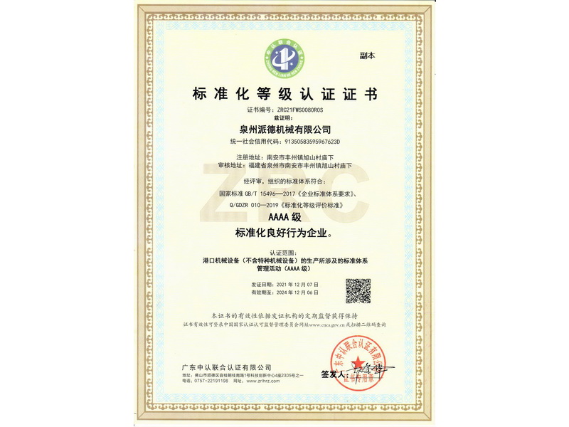 Standardization certificate